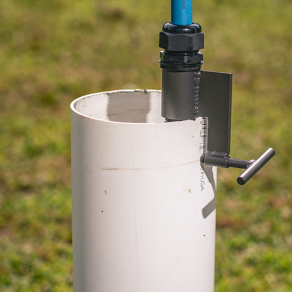 This open well casing clamp is designed for temporary rapid-deployment installations in any "open-well." It simply hangs over the edge of any open casing and cinches in place with a few twists of the locking tee handle. The uppermost part consists of a nylon gripper that will secure the Flojak Ready™ for pumping. The heavy-duty clamping devise of these hand pump well parts is constructed from welded steel and molded nylon with rubber grippers. If you are using this system it is a good idea to also purchase a Flojak Ready™ Pump Cover to protect the system and keep debris from falling into the well.