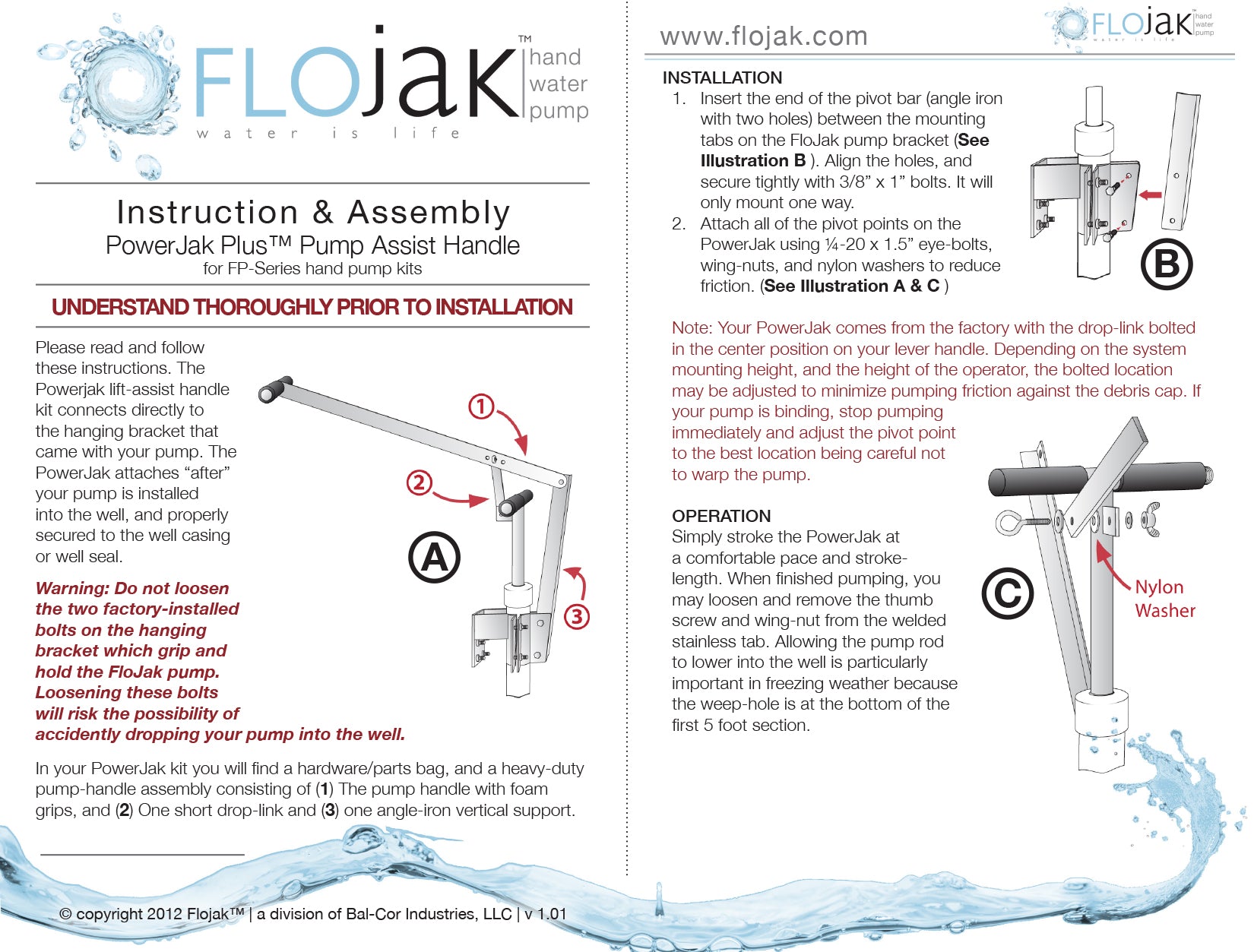 PowerJak™ well water hand pump handle comes fully assembled from the factory in Arkansas, and bolts right on to your FloJak™ mounting bracket. It may be added after FloJak™ installation. However, if you are storing your pump system as a precaution, please order the PowerJak™ with your FloJak™. When the lights go out...it's too late.